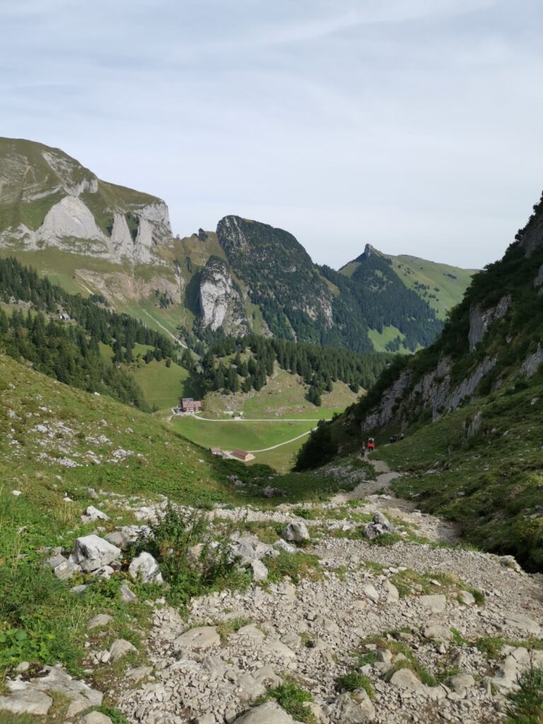 Vom Parkplatz in Brülisau laufen wir der Ebene entlang zur Talstation Alp Sigel. Hier geht es dann in den Wald das Brüeltobel bzw. dem Brüelbach entlang zum Sämtisersee (Plattenbödeli)