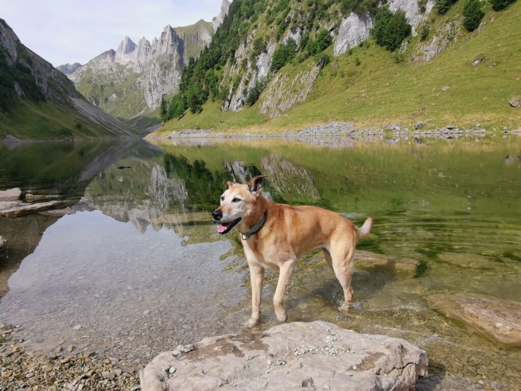 Bonita hat fast den ganzen Weg selber bewältigt und war nur zweimal im Rucksack (und der Star auf der Wanderung). TOP!